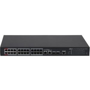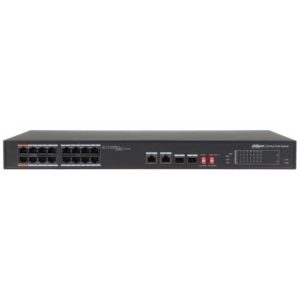 DAHUA 16 Port L2 Yönetilebilir Switch (16 GE PoE +2GE SFP Port,1 Konsol, Toplam 190WPoE)16×10/100/1000 Base-T、2×1000 Base-X;Anahtarlama Kapasitesi: 52Gbps, Packet Forwarding Rate 23.81Mpps, Paket Buffer:4Mb,MacTablosu Boyutu: 8KVLAN, Spanning Tree, Loop Protection, Port Aggregiation, Mirroring, Flow Control, Multicast,QoS, DHCP, SNMP, SSH, CLI, Web